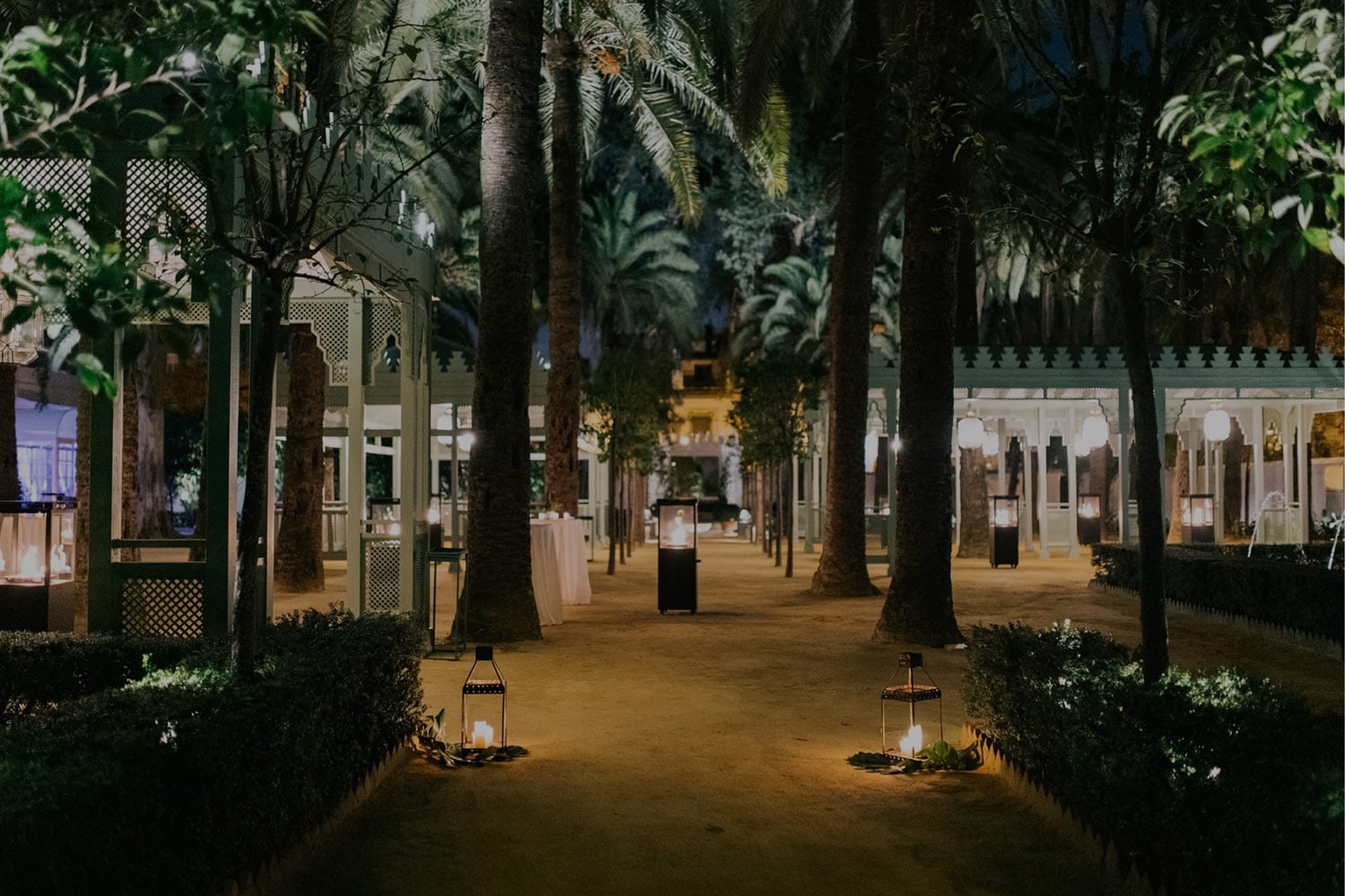Villa Luisa es una casa-palacio histórica situada en pleno corazón de Sevilla, construida en los años 20 por encargo de un mecenas del arte. Este espacio destaca por su arquitectura de aire neomudéjar, su elegancia clásica y sus amplios jardines llenos de palmeras, que ofrecen un entorno único.